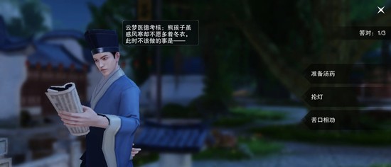 7.云梦医德考核:熊孩子虽感风寒却不愿多着冬衣,此时不该做的事是?抡灯