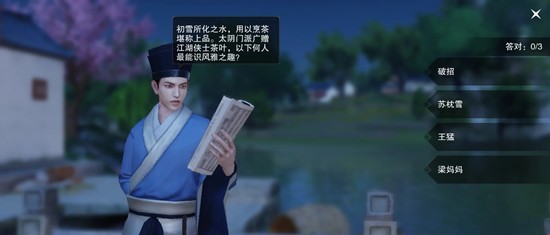 14.初雪所化之水,用以烹茶堪称上品。太阴门派广赠江湖侠士茶叶,以下何人最能识风雅之趣?苏枕雪