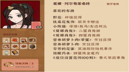 莫娜在火山的女儿中担任厨师角色,擅长为队伍制作美味餐点。她对睡火莲同样有较高好感,赠送后可获得5点好感提升。此外,勿忘我也能被接受,增加2点好感。值得注意的是,莫娜并不喜欢所有类型的礼物,因此避免赠送无关物品是维持好感的关键。通过合理送礼,可以让她在后续剧情中发挥更大作用。