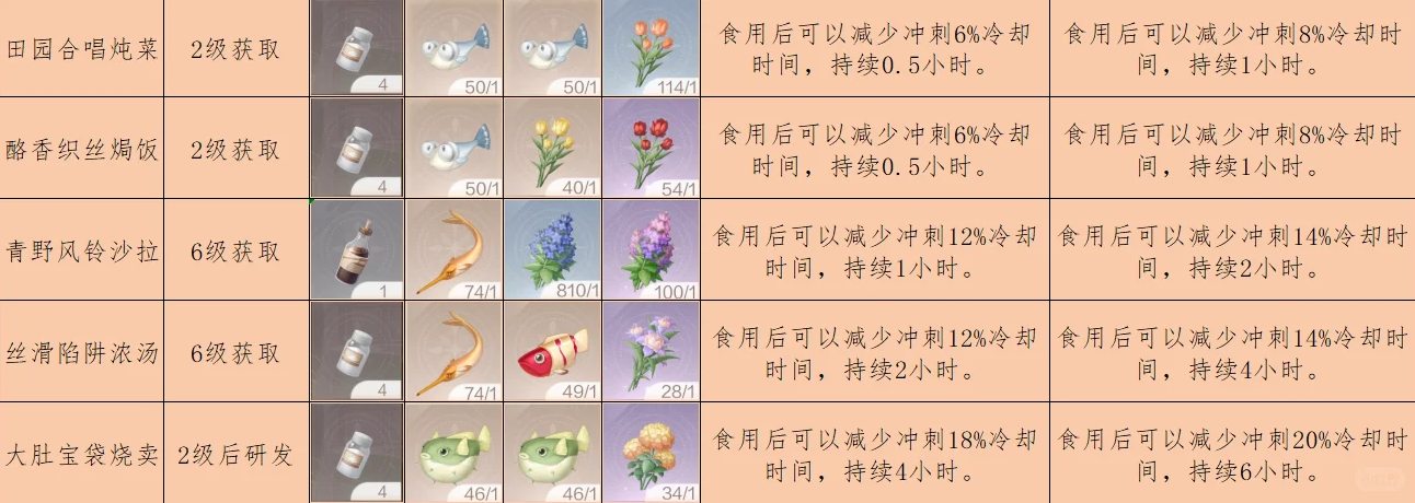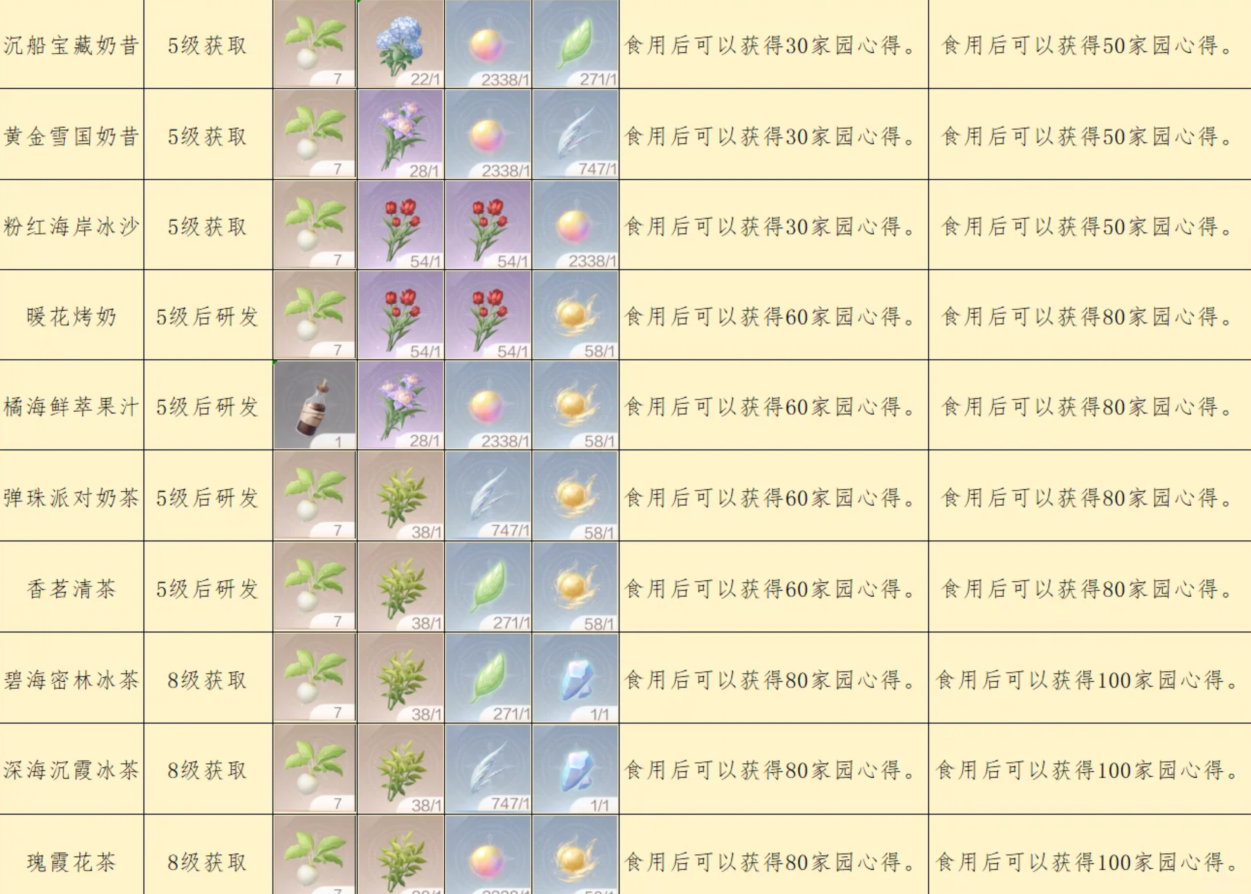 无限暖暖1.11拾光季家园烹饪配方大全
