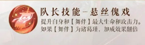 作为队长技能,能够同时提升自身与舞伴的最大生命和攻击力属性。这个技能同样拥有兄弟联动的特殊效果,当舞伴是诸葛瑾时,属性加成会获得翻倍提升。在如鸢的组队玩法中,这个技能让诸葛诞作为队长时能够发挥更大的团队价值。