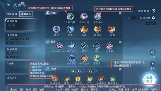 必带内功:鸣镝裂风 鸣沙诀(其他内功根据自身元素词条收益来选择即可)
