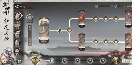 在仕途路线的选择上,每条路线都能提供曹操的角色碎片用于升阶,但兵种路线一定要选择下路的精锐骑兵和重骑兵,这条路线能让曹操拥有六格移动力,大幅提升机动性,灵活的走位可以更好地覆盖队友,提高辅助效率。