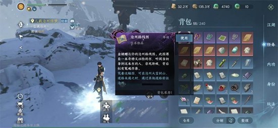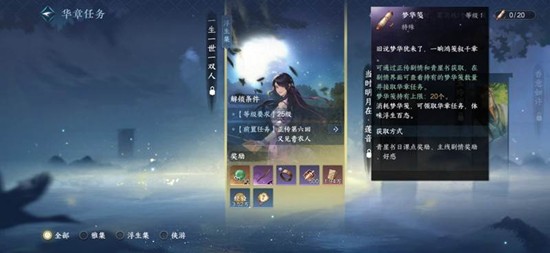 快人一步,抢占先机。如果玩家不想在主线任务上花费太多时间,也可以选择另一种方式。当玩家等级达到25级并完成主线任务“又见青衣人”后,可以使用梦华笺接取华章任务。梦华笺可以通过完成每日任务、好感度任务或主线任务获取。接取“一人一世一双人”支线任务后,跟随任务进入盈玉馆场景,在桌子上可以找到“沧州路线图”。使用这张路线图后,即使主线任务还未推进到沧州,玩家也可以提前进入探索。