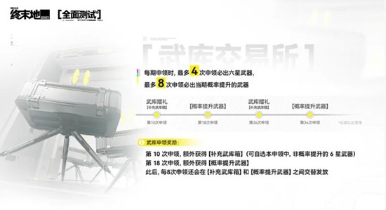 此后,每8次申领还会在【补充武库箱】和【率提升武器】之间交替发放