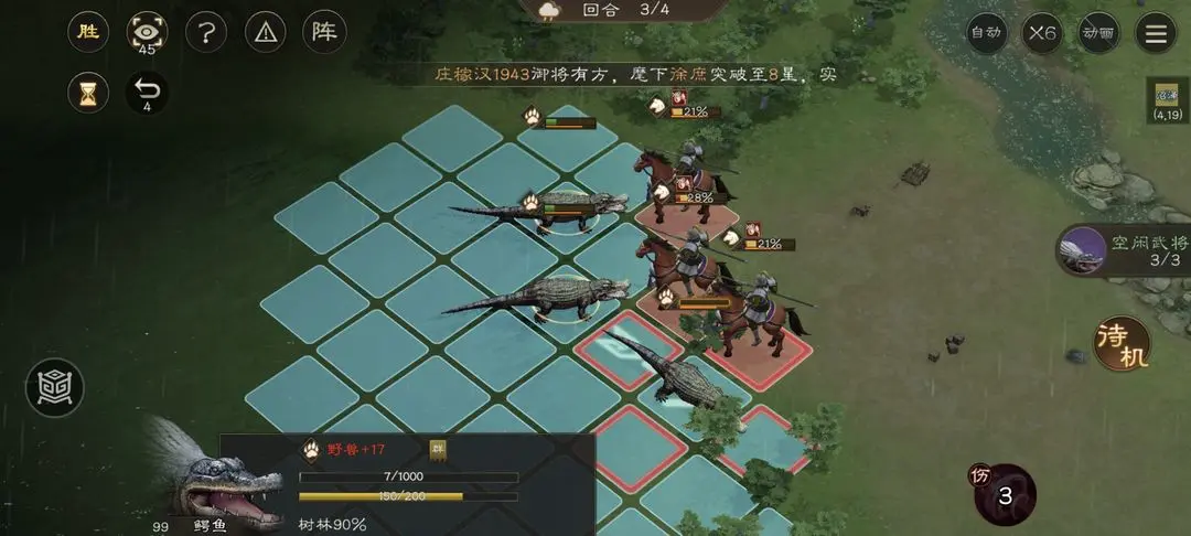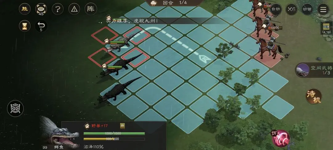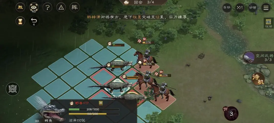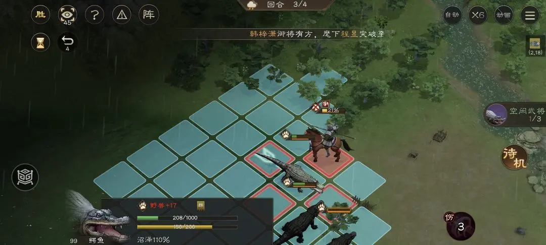 新三国志曹操传中鳄鱼伤人关卡里第一回合我方全都后撤,第二回合都上去放技能,第三回合开始反击,最后就可以慢慢过关了。