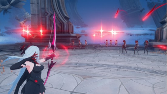 在输出节奏方面,二重螺旋中的茵布拉花序表现出极强的稳定性。不同于某些爆发型武器存在明显的技能空档期,这把武器的攻击间隔均匀,不会出现输出断档的情况。尤其是在中远距离交战时,玩家可以通过平稳的射击节奏持续施压,配合追踪箭矢类技能,进一步提升命中率与伤害效率。面对高速移动的目标时,这种持续压制的能力显得尤为重要,能够在不依赖高爆发的前提下完成有效牵制。