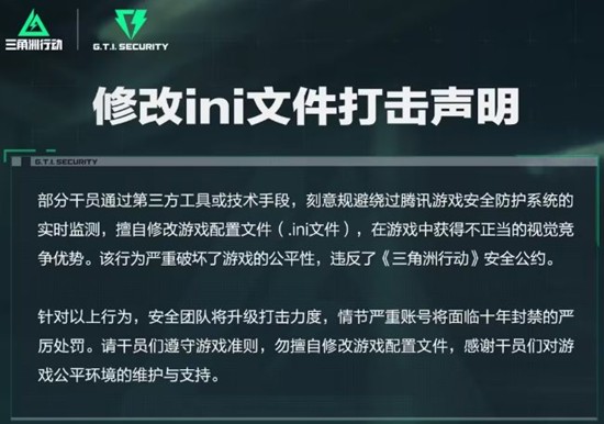 三角洲行动打击修改ini文件行为-最高奖面临十年封禁