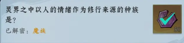 1、灵界之中以人的情绪作为修行来源的种族是?魔族