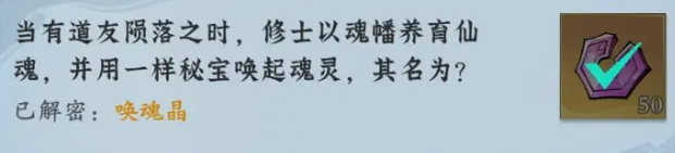 3、当有道友陨落之时,修士以魂幡养育仙魂,并用一样秘宝唤起魂灵,其名为?唤魂晶