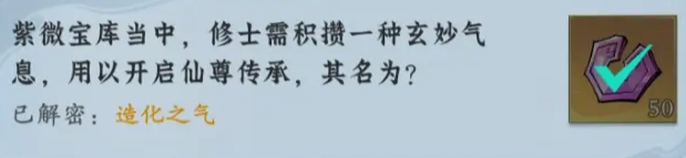 4、紫微宝库当中,修士需积攒一种玄妙气息,用以开启仙尊传承,其名为?造化之气