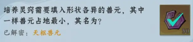 5、培养灵窍需要填入形状各异的兽元,其中一样兽元占地最小,其名为?天枢兽元