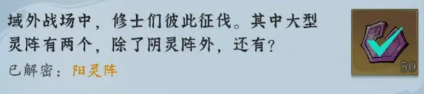 7、域外战场中,修士们彼此征伐。其中大型灵阵有两个,除了阴灵阵外,还有?阳灵阵