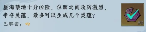 8、星海禁地十分凶险,位面之间攻防激烈,争夺灵蕴,最多可以生成几个灵蕴?四