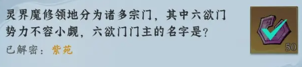 9、灵界魔修领地分为诸多宗门,其中六欲门势力不容小觑,六欲门门主的名字是?紫苑