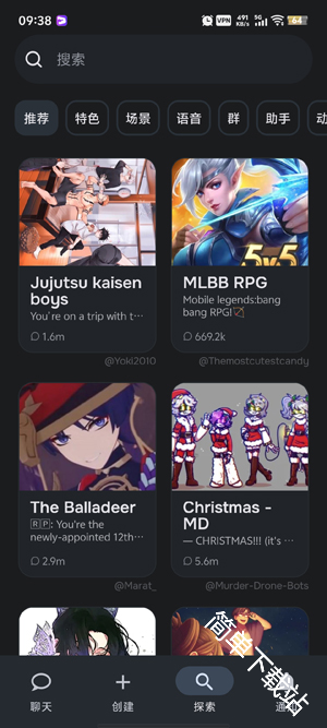 1、提供了庞大的AI角色库,里面的AI都有着超绝的活人感