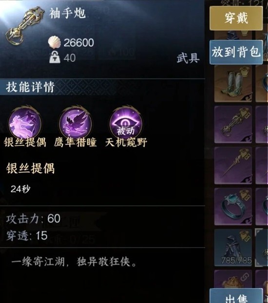 袖手炮则是我个人认为非常适合不想打架的玩家的,这个武器带的技能鹰隼猎瞳可以帮忙探测周围有没有人,人在哪个方向,一旦提前探测到,就可以直接反方向开跑了(我就社恐怎么了)。