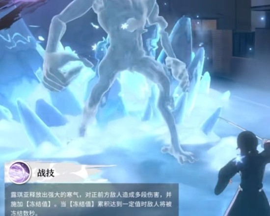 朽木露琪亚是当前版本中冰系控制的代表角色。她的技能围绕冻结机制展开,能够向前方敌人释放寒气,造成多段伤害并叠加冻结值。当冻结值累积到阈值时,可强制使目标进入冻结状态数秒。这一控制效果在高难度副本中尤为关键,能有效打乱敌方进攻节奏,为己方创造安全的输出窗口。凭借稳定的控场能力,朽木露琪亚常被用于需要精细操作的战斗场景。