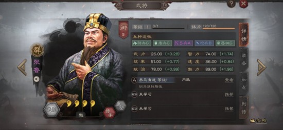 张鲁在三国乱世霸王中的定位偏向后勤支援型武将,统率与智力成长中等,但弓兵适性达到A级,使其在防守战中具备较强的消耗能力。他的战法“养马有道”不仅能在委任系统中发挥作用,在部分战斗场景下还会触发降低敌方士气消耗、减缓出征效率等负面效果。这意味着若与张鲁陷入拉锯战,玩家一方很容易在资源和状态上处于下风,因此必须避免拖沓,采取速攻策略。