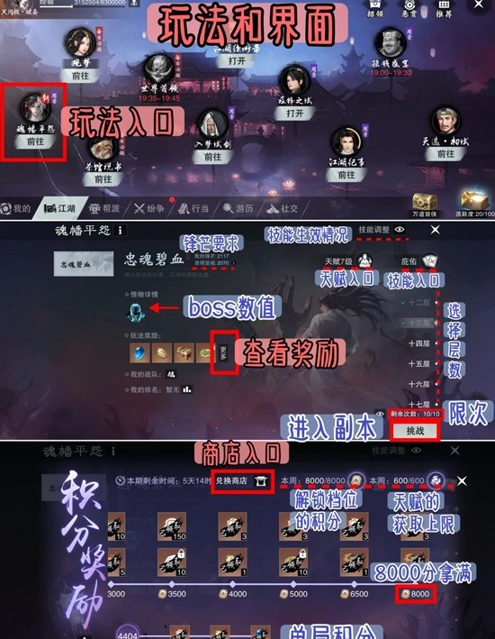 ①满奖励=拿满600天赋获取上限+8000积分解锁所有档位奖励+单局得分2500档位奖励=18魂幡令+590魂幡币