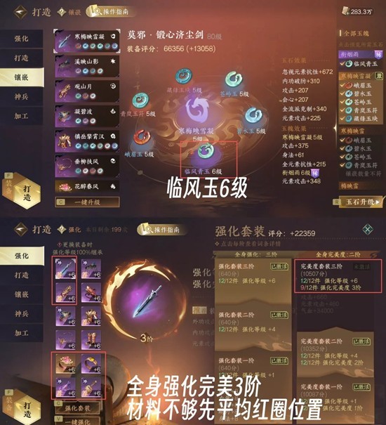 ps:攻击部位临风玉石为6级,强化如图点保底5级,149百炼自选优先通过战令兑换