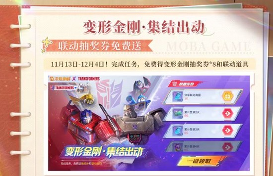从11月13日开始,玩家不仅可以体验到全新的游戏内容,还有机会获得丰富的联动奖励。首次十连必得钢索的奖励更是让玩家充满期待。让我们共同期待11月13日的到来,一起加入这场变形金刚的冒险之旅吧!