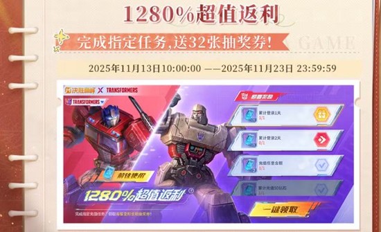 决胜巅峰变形金刚联动11月13日将开启-首次十连必得钢