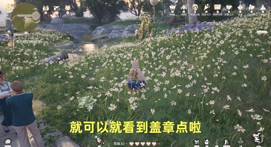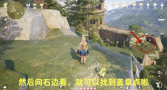 传送到 捕虫小屋 锚点,然后向两只天鹅的地方走,在亭子附近就可以看到盖章点啦;