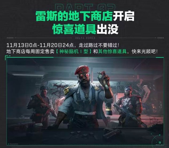 地下商店每周固定售卖神秘脑机I型和其他惊喜道具,玩家走过路过不要错过!