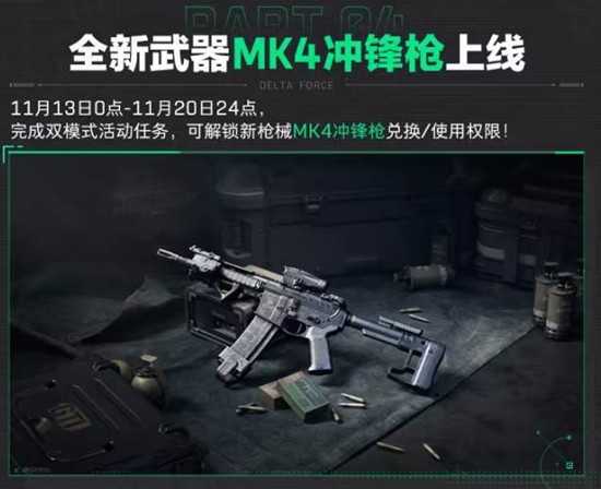 完成双模式活动任务,可解锁新枪械MK4冲锋枪兑换/使用权限。