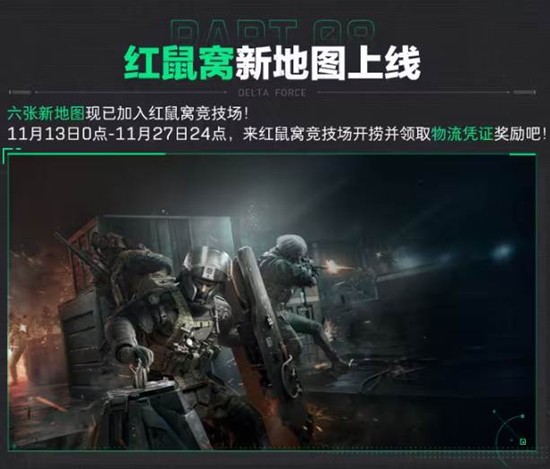六张新地图现已加入红鼠窝竞技场,玩家可以来红鼠窝竞技场开捞并领取物流凭证奖励。