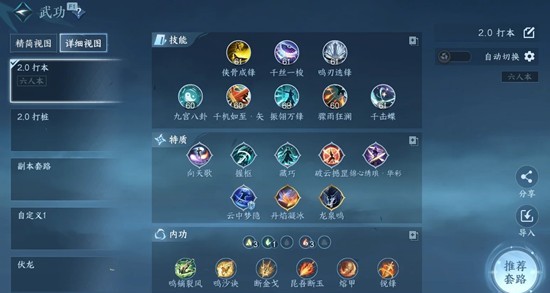鸣镝裂风/鸣沙诀/断金戈/昆吾断玉必上,最后两个内功从逢虚/熔甲/锐锋/破戟/破霄中选收益最好的即可
