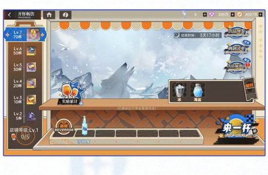 活动玩法:活动期间,玩家可以在饮品台调配各类饮品,并通过升级店铺解锁更多调制材料和奖励。根据店铺等级的提升,玩家还可获得全新炼金武器「极寒咆哮」、限定皮肤-极地宣言等更多稀有奖励。