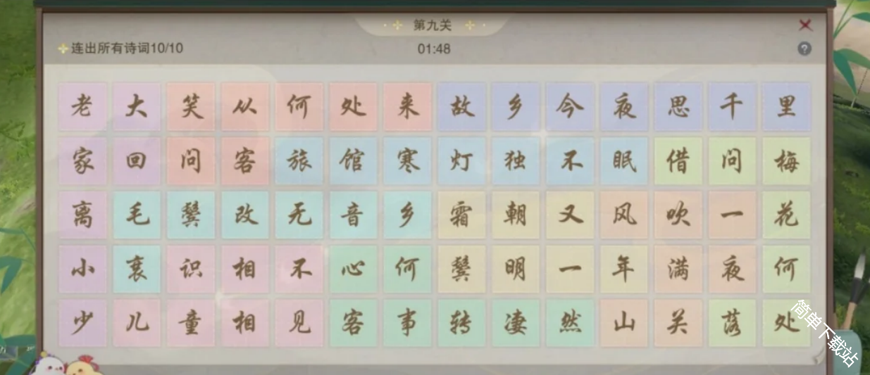 剑网3伊丽川觅句成诗小游戏第九关答案分享