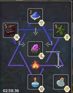 7、腐肉×14,硫磺×25,毒箭草叶×6,水晶头颅×1