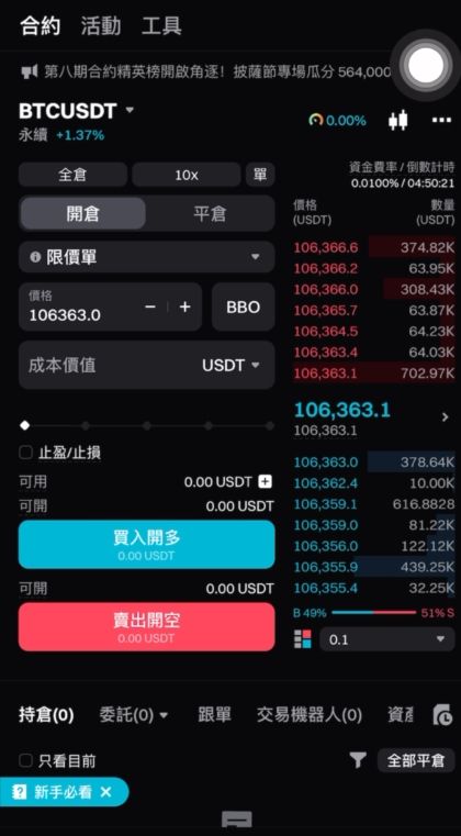 在交易手续费的部分两者其实没有差太多,像是现货交易都是0.1%。合约交易币安taker手续费稍微略便宜一点,大概是0.05%,Bitget则是0.06%,整体来说并没有差太多。