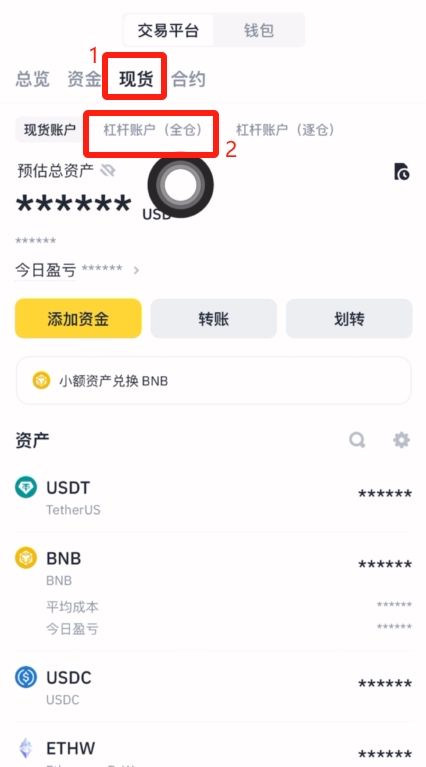 最后资产管理的部分,币安的资产管理界面相对来说是比较简单一点的,因为它会把一些杠杆账户等等的功能,都浓缩在各主功能的下面,像是杠杆交易部分你需要到现货,然后找到杠杆账户。
