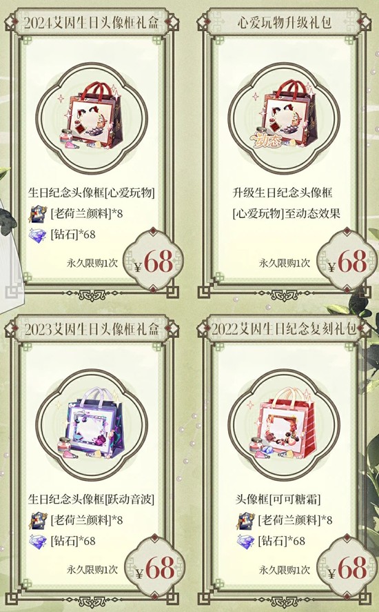 11月14日09:30 - 11月17日05:00,艾因往期多款生日服装礼包、头像框礼包返场,欢迎前往[采购]-[生日复刻]选购。