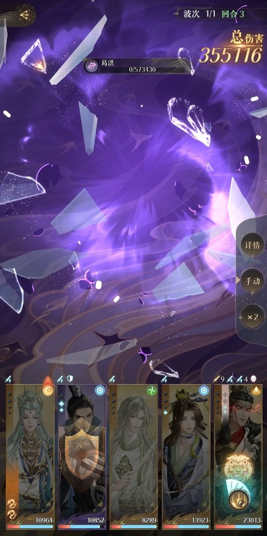 开局是诸葛亮大会杀掉一群小兵,葛洪身上有4层【龙脉能量】,他身上有3层以上,会造成一次触发伤害,减少一层【影甲】,如他的天赋描述,开局他有5层,这次行动后他会减少一层。