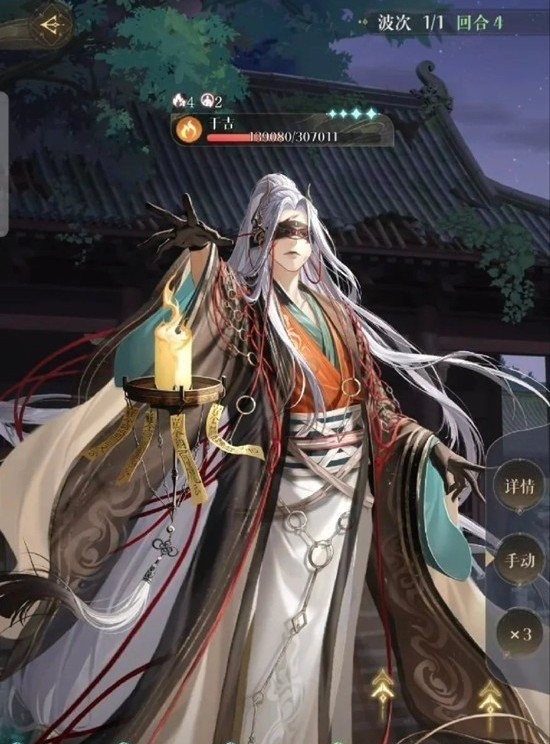 开局诸葛亮血量最少,第一次打死干吉诸葛亮会挂上鬼脸,挂上后一直防御,第二次打死干吉让陈登(其他密探也可以)挂上鬼脸 ,两个鬼脸密探可以普攻,确认两个回合内可以打死干吉鬼脸密探就开大