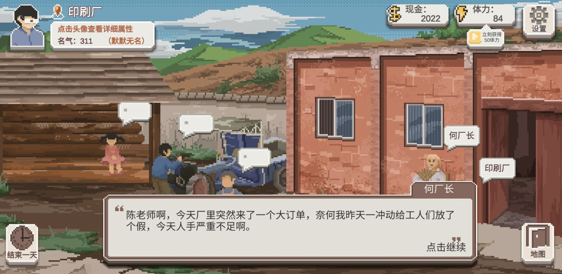印刷厂的厂长在考试日会发布需要帮忙的任务,消耗40体力可以获得140金钱和5名声