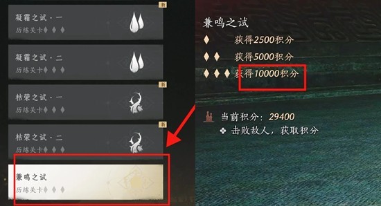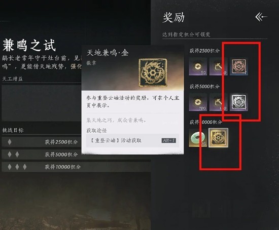 选【兼鸣之试】,挑战达到1w积分,即可获得三个徽章。