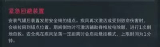紧急回避装置是疾风的终极技能,可在地面设置一个锚点,持续约20秒。在此期间再次激活技能,即可瞬间返回锚点位置。若被击倒,系统将自动触发自救并拉回锚点,大幅提升生存率。由于锚点可被敌人摧毁,建议放置于隐蔽且不易被发现的位置,例如拐角后方或高台角落。