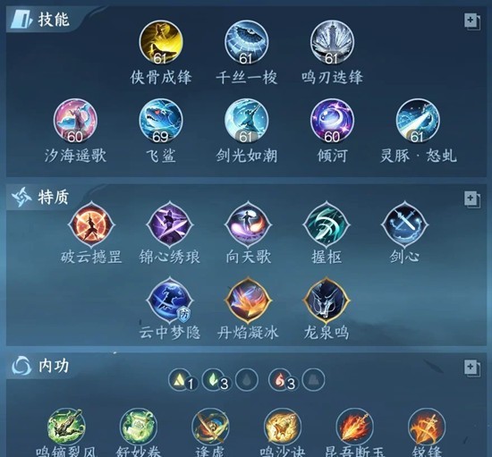 内功:鸣镝/鸣沙/昆吾必带,注意舒秒卷必带的情况下一定是三木周天。逢虚/锐锋摇摆位:点名炉/破霄/破戟/汲川。