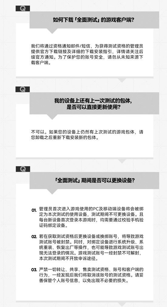 .严禁一切转让、共享、售卖测试资格、账号和客户端的行为,一经发现后我们将取消该账号的测试资格。请妥善保管个人账号信息,以免出现不必要的损失。