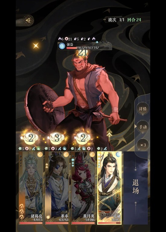 我的练度是7回合进二阶段12回合进三阶段,进三阶段之前硬扛一个大招只要没减员就是最大胜利,三阶段甘宁第一个大用曹植封大,开第二个大之前曹植退场打完甘宁,只要亮英在场小兵就很好打