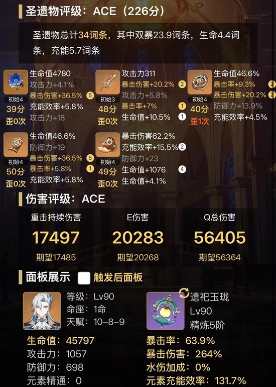 10精5玉珑龙王 猎人套 10-8-9 生命3w6 精通0(最好有点精通 因为带的玉珑所以吃武器后有80)充能131 生生爆 双爆64-264 ;