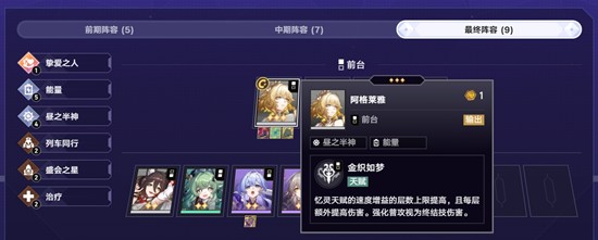 高速阿雅流以阿格莱雅为核心输出,依靠反重力鞋快速叠加速度属性,利用其技能机制将速度转化为伤害加成,实现越战越强的效果。该阵容通常采用5能量4昼之半神或6能量3昼之半神的羁绊组合,确保阿格莱雅能频繁释放大招并实现自拉条。关键角色包括阿格莱雅、星期日、停云、知更鸟和记忆主,其中停云与星期日负责提供大招充能,星期日、知更鸟和记忆主还能通过拉条技能进一步提升阿格莱雅的出手频率,形成高速循环输出节奏,在崩坏星穹铁道的对战环境中具备极强压制力。