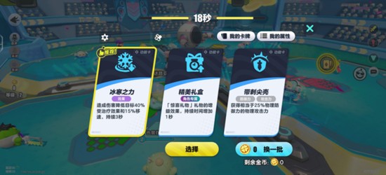 蛋仔派对超燃竞技场为8名玩家随机匹配成4支队伍,每队两人,目标是成为最后存活的小队。每一局比赛分为多个回合,包含准备阶段与战斗阶段。前8个回合属于准备期,在此期间玩家需从三张卡牌中选择一张进行强化。这些卡牌涵盖攻击、防御、治疗、隐身等多种属性类型,合理搭配可显著增强角色能力。随着回合推进,资源获取与策略布局将直接影响后续战斗表现。