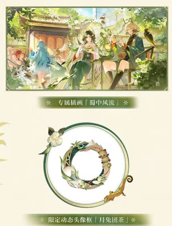 玩家在获得本系列任意一款皮肤后,除了可以拥有新皮肤外,还可以获得专属插画「蜀中风流」。同时,获得两款皮肤还将解锁限定动态头像框「月兔团茶」,为玩家的游戏体验增添更多乐趣。